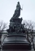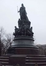Бронзовая фигура Екатерины Второй, изваянная скульптором Чижовым, красиво завершает композицию монумента. Правда, есть некоторое противоречие между правдивыми изображениями исторических деятелей и явно идеализированной статуей императрицы.